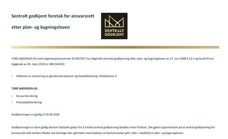 Vi er sentral godkjente etter direktoratet for byggkvalitet.